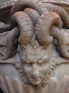 Footed, two part terra-cotta urn decorated with egg and dart, gadrooning, patera, rosettes, leaves, and two medusa. The urn appears to have been painted or glazed overall with thin washes. There are other areas which appear to have been overpainted with one or more thicker coatings. Erosion of the surface has occurred for the most part, directly below this thicker coating/layer. Close examination of these areas reveal the presence of layers and the method by which they were applied; brush marks are quite pronounced at the interface of many instances.